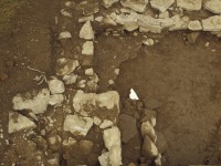 Two additional 10 x 10 foot units were excavated on the exterior of the Triplex foundation. The Exterior East unit 2 outside of Triplex South was placed to uncover evidence of a doorway along the east front of the dwelling. Several large architectural features were exposed during these excavations including a stone wall running north-south (F490), parallel with east wall, and a builder’s trench (F488) that consists of 1930s and original nineteenth-century fill. The Exterior West unit 3 was placed to expose the chimney base of the Triplex Middle. Excavations revealed the original hearth/chimney foundation as well as the discontinuity between the Jackson-era and WPA-era builder’s trench (F493) and foundations. The original stone foundation consisted of large dressed blocks matching those of the mansion and kitchen.