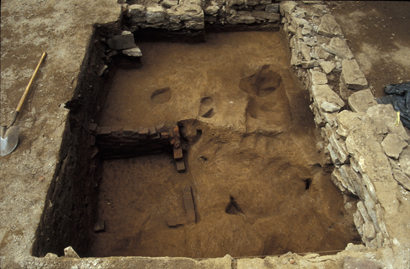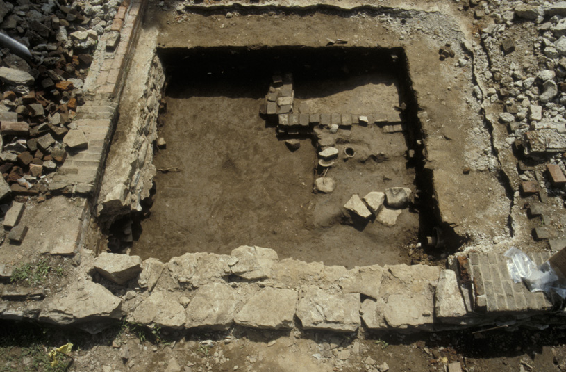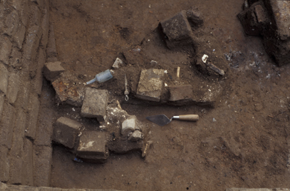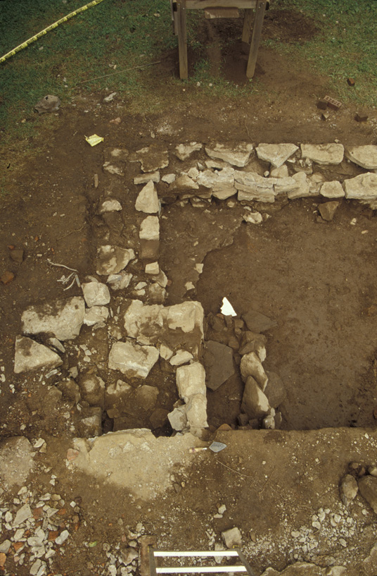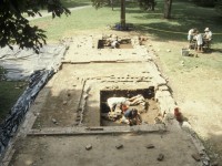 The 1993 fieldwork program concentrated on Triplex Middle and Triplex South units, with approximately 100% of the Triplex and one third of Triplex South excavated. Two areas on the exterior of the building were also examined: Exterior East unit 2 outside Triplex South; and Exterior West unit 3 outside Triplex Middle. Excavation began with removal of the concrete slab that served as the base for the 1930s museum structure erected on the foundations of the Triplex. The subsequent goal was to expose the limestone foundations of the building outline for the Middle and South units.