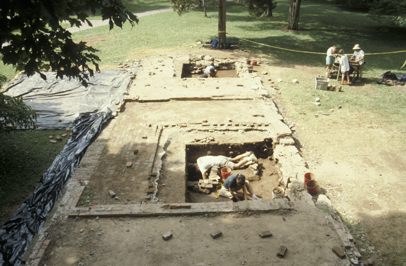 The museum was torn down in 1989, leaving the foundation and concrete floor intact for the purpose of future archaeological work. Excavations of this structure were conducted by the Hermitage Department of Archaeology under the direction of Larry McKee in 1993 and 2000. During excavations, each unit was labeled according to its relative position to the mansion, namely Triplex North, Middle and South units.