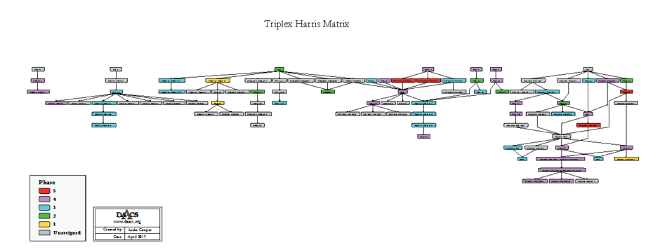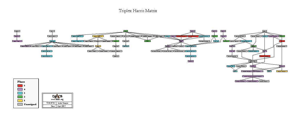 This Harris Matrix is based on data on stratigraphic relationships recorded among contexts in the DAACS database. It was drawn with the ArchEd application. See http://www.ads.tuwien.ac.at/arched/index.html.