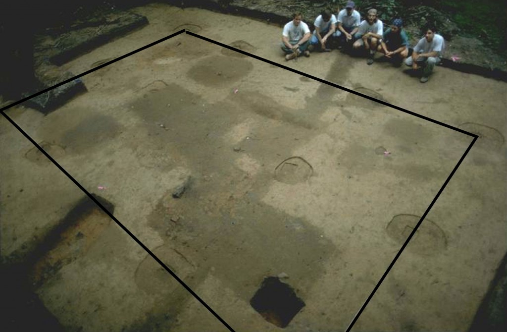 As a means of sampling the topsoil and plowzone at Utopia III, archaeologists excavated more than 700 shovel test holes at 10 ft. intervals throughout the site area. The backfill from each shovel test was sifted through ¼” hardware cloth and all artifacts as well as a soil chemistry sample were collected. Furthermore, 63 test units were excavated at the site and blocks of units were used to uncover both dwellings in their entirety as well as sizeable portions of two major trash pits. Once the shovel testing and test units were completed, an excavator mechanically removed the remaining topsoil and plowzone from the site. Archaeologists used flat shovels and trowels to scrape down the site and expose and define the features. A plan map of the site then was generated a scale of ¼”=1 ft. and each feature received a context number. Trowels were used to excavate the features and all soil was sifted through ¼” hardware cloth. All features were bisected at least once and a profile and plan was drawn at a 1”=1 ft. scale. Some of the more complex subfloor pits were bisected several times. One-hundred percent of the soil from all subfloor pits was saved and processed through a soil flotation system. All postmold fill was saved and floted, whereas five liters of each posthole was floted. All other features were sampled and floted as well. Heavy and light fraction generated by the flotation machine were sorted by hand with the aid of a magnifying glass and incorporated into the artifact collection from the site.