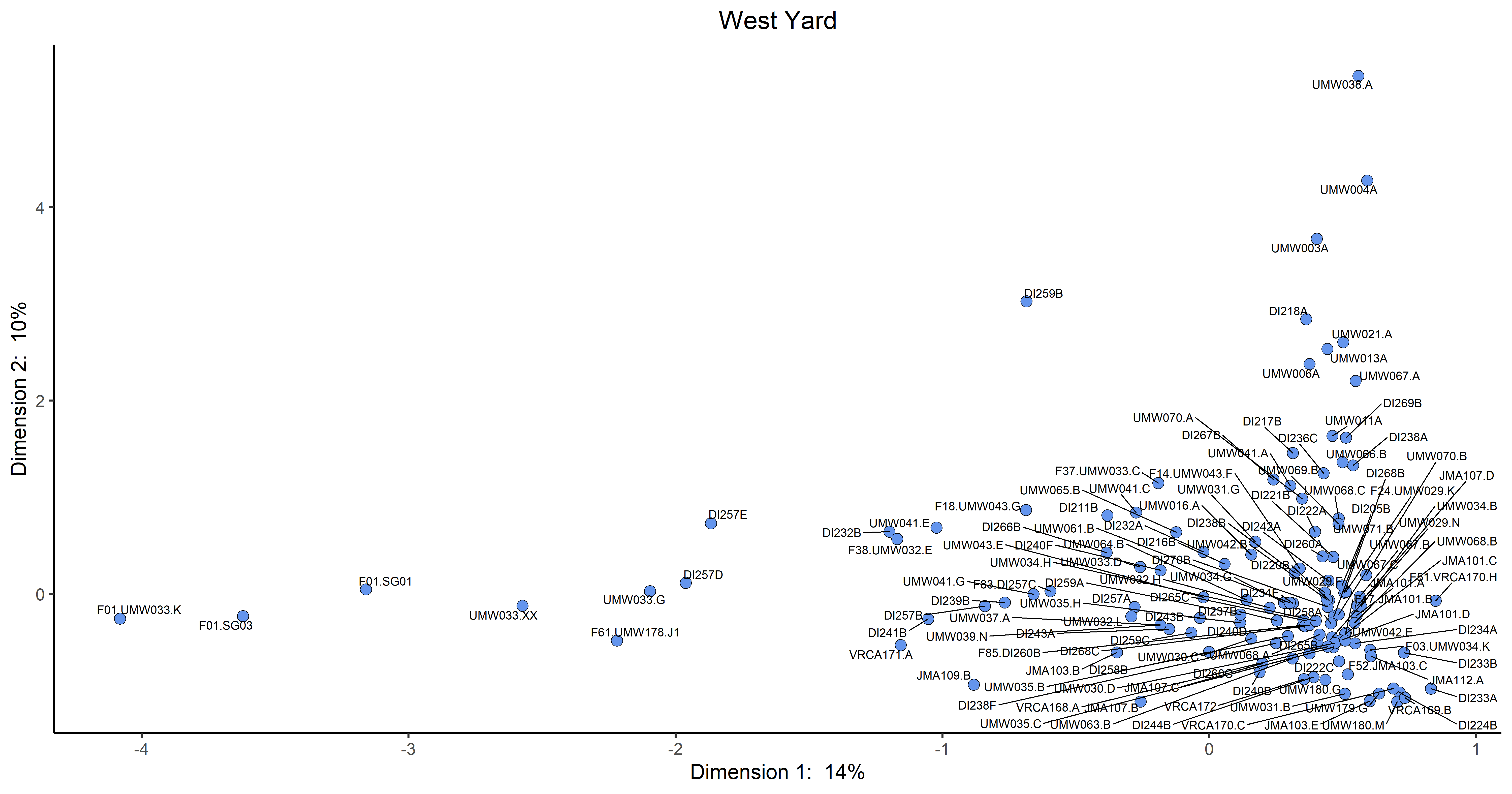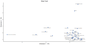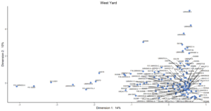 All of the R code used in this analysis was written within the domain of the R Core Team at the R Foundation for Statistical Computing, Vienna, Austria (2014). The correspondence analysis for West Yard was conducted by Elizabeth Bollwerk.