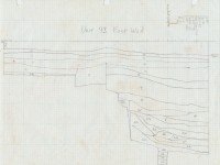 A second 3-x-5 foot test unit (VRCA141) was placed near the east wall of the same building revealing a small colonial trash pit (2.5 feet in diameter) containing primarily oyster shell and animal bone (VRCA141C). The pit had been dug through a surviving old topsoil layer (VRCA141B). The intersection of two 1930s archaeology trenches was noted in the south and west portions of the square. Trenches in this location are not shown on the Shurcliff and Williams site plans, an indication that more archaeologically destructive trenching was carried out in the 1930s than was recorded.