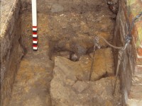 A rectangular feature, 36-x-10 feet in plan and 5 feet in depth, appears on the Williams site plan not far from the 18-x-50 foot structure noted above. A label on the plan suggests it was an icehouse. A 3-x-5 foot test (VRCA171) was placed across its eastern edge, disclosing that, once the feature had been located during cross-trenching, that portion of it within the test square was completely emptied of its contents. The 1930s trench cut through a buried topsoil layer (VRCA171B), which unfortunately did not contain any dateable artifacts.
