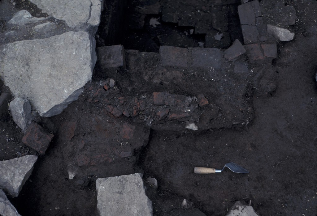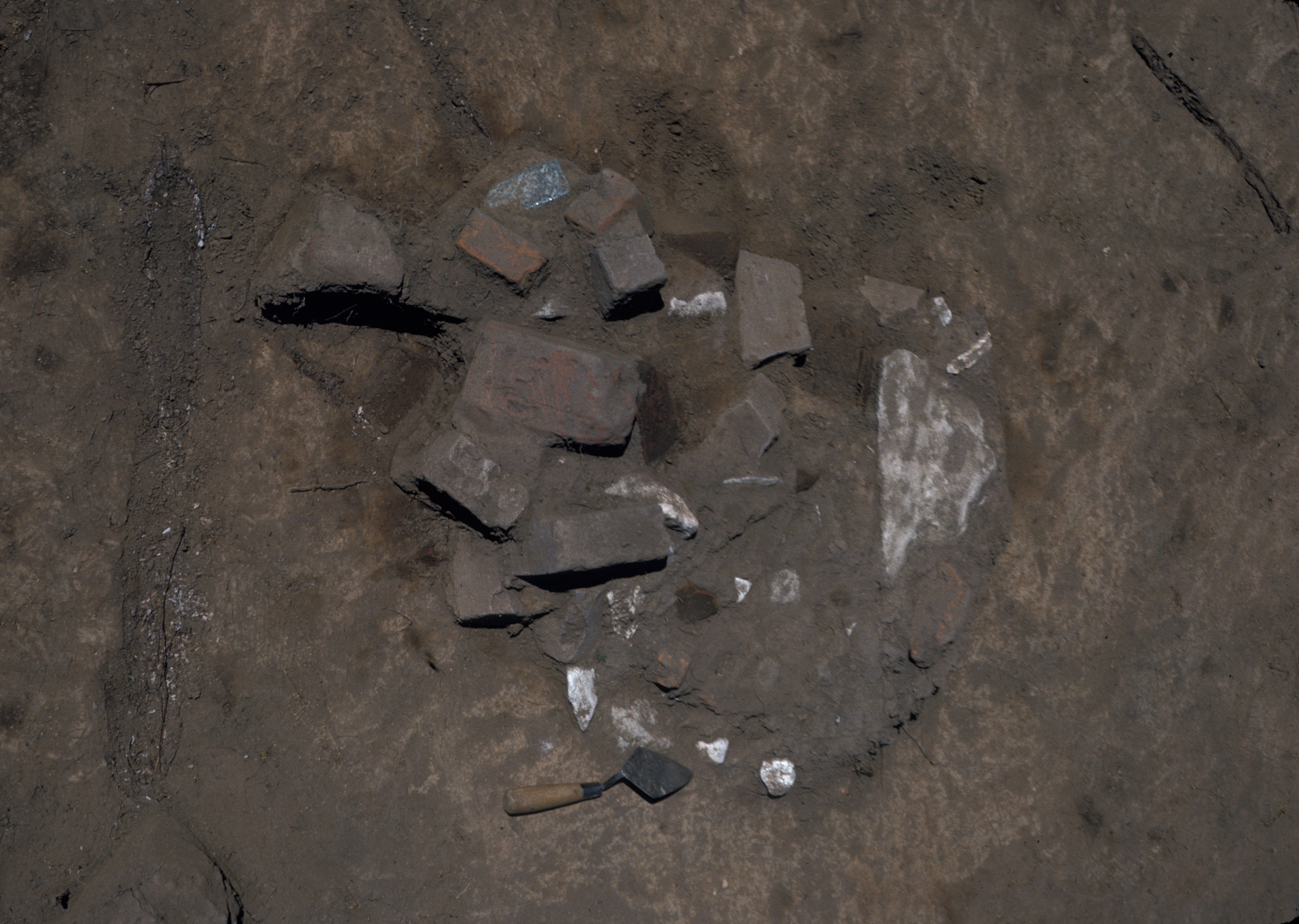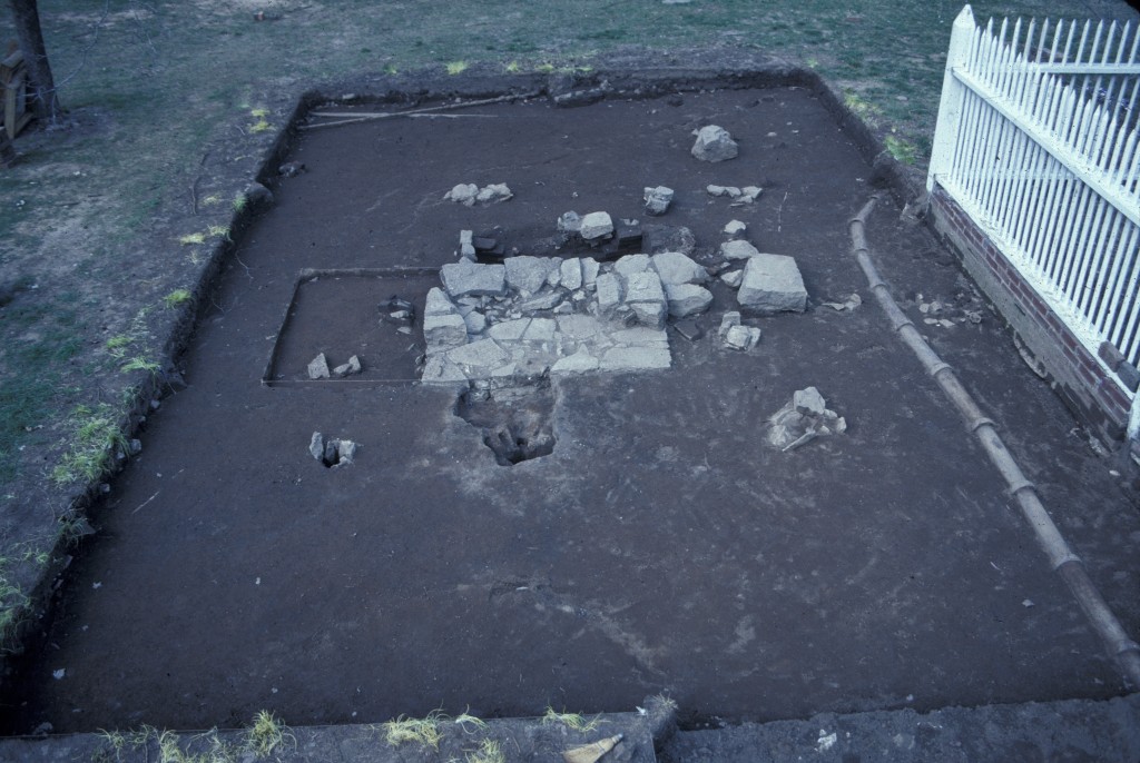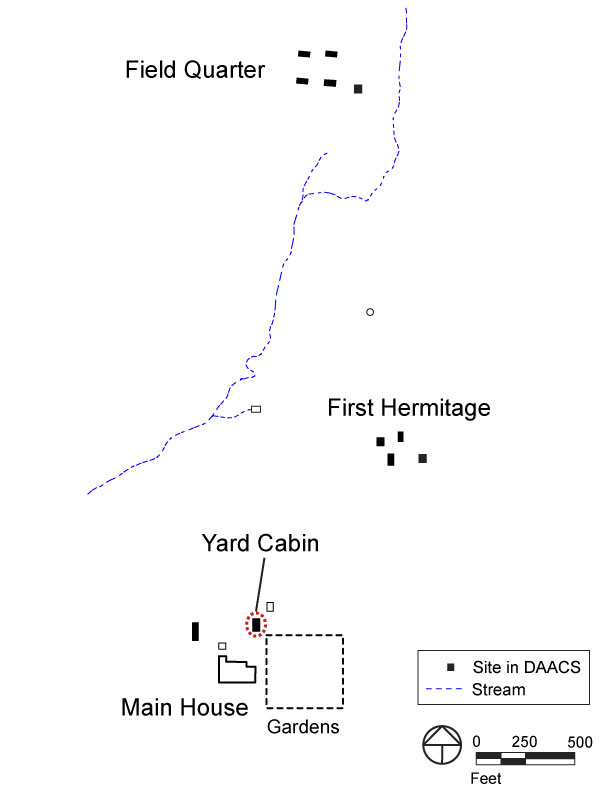 The Yard Cabin was a log duplex measuring approximately 20 by 40 feet, near the northwest corner of the Hermitage garden fence, approximately 90 feet from the mansion. The remains of the slave dwelling consisted of a massive limestone hearth base and a brick-lined subfloor pit directly in front of the hearth.