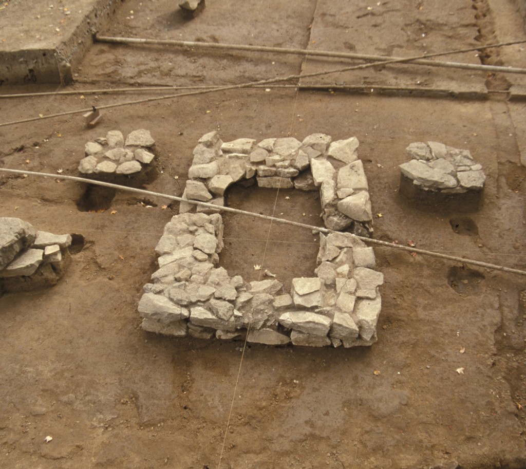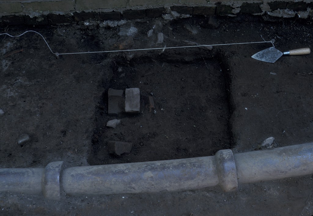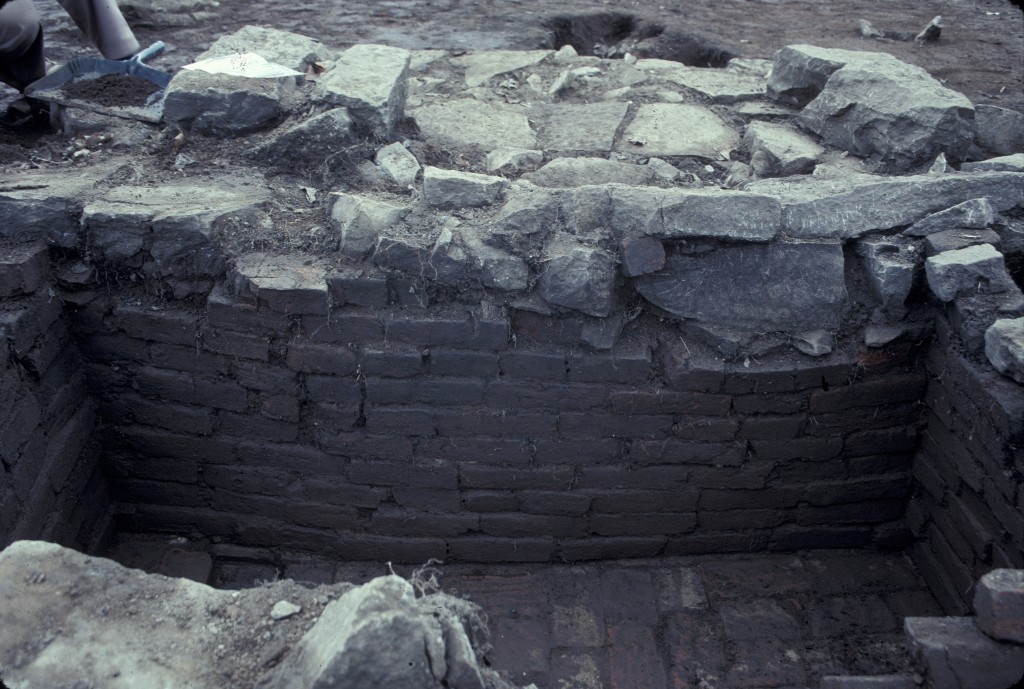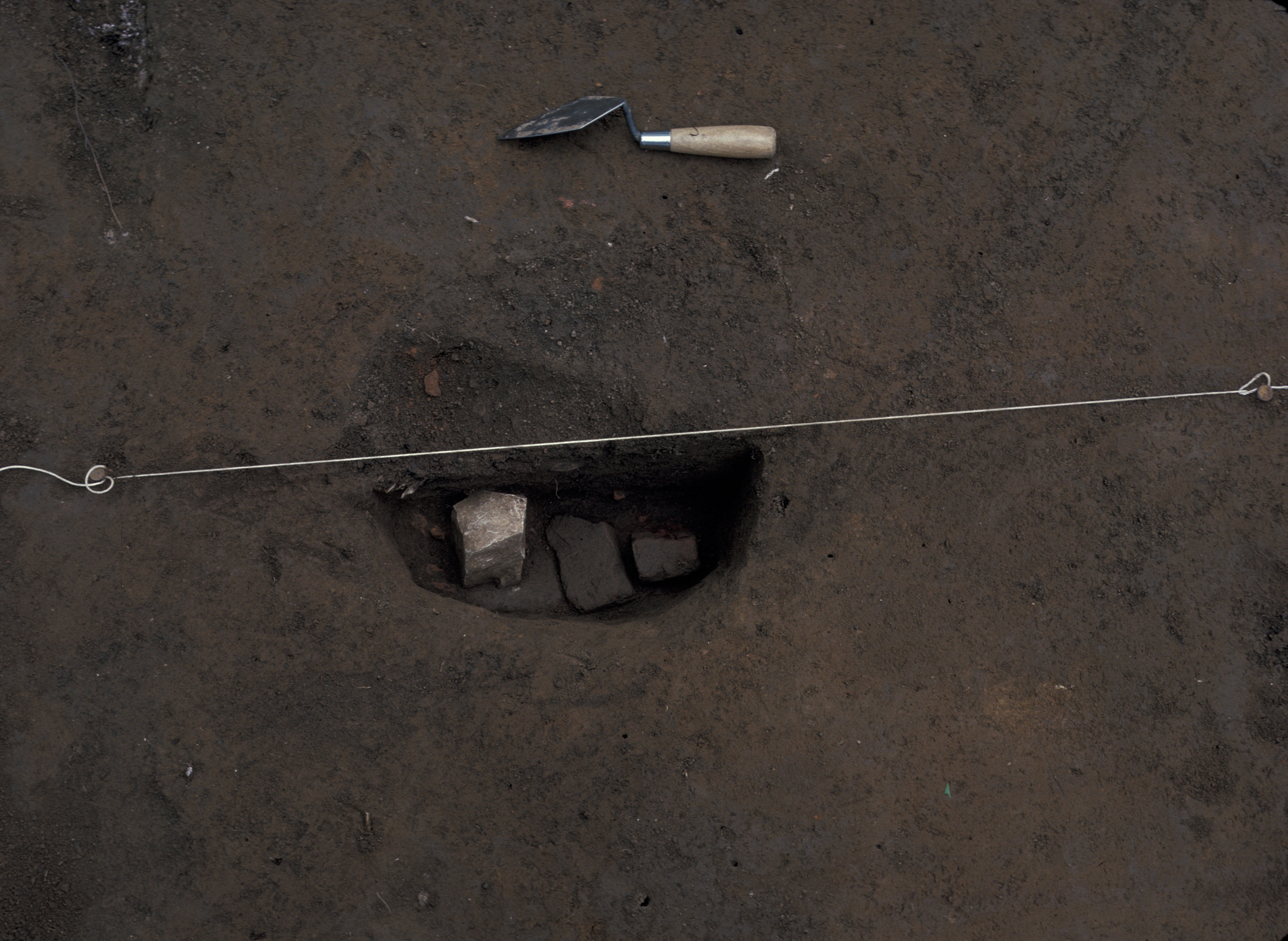 The Yard Cabin was a log duplex measuring approximately 20 by 40 feet, near the northwest corner of the Hermitage garden fence, approximately 90 feet from the mansion. The remains of the slave dwelling consisted of a massive limestone hearth base and a brick-lined subfloor pit directly in front of the hearth.