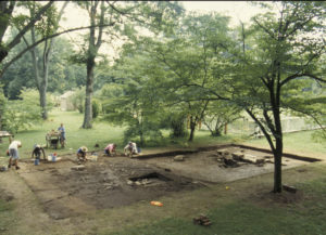 The original excavators of the Yard Cabin site assigned numbers to individual features. Between 1987 and 2003, all archaeological features identified at The Hermitage were assigned consecutive feature numbers, regardless of excavation year and location on the property. For example, the first feature identified at the beginning of Larry McKee’s field work in 1987 was Feature 1. By the end of the excavation season in 2003 over 900 features had been identified and excavated at The Hermitage since 1987.
