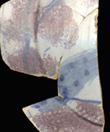 This sherd shows the tail of the peacock.