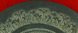 Similar to Botanical Band 33 but lacks the triangular peaks between the repeating pattern of fern-like leaves. Also slightly similar in appearance to some spearhead bands. Commonly found on black basalt.
