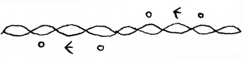 A band of connected ovals or circles. Intermittent clusters comprised of a three-prong “flower” flanked by small open circles are placed at either side of the chain at regular intervals.