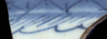 Cloud Band 1 is characterized by a scalloped band extending from another band. This scalloped area also contains diagonal hatching. This band is not identified as a scallop band because in the literature of Canton decorated Chinese porcelain, this band element is always known as a cloud element.