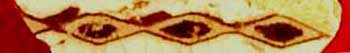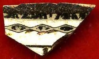 This band consists of a solid diamond, slipped or painted, outlined by another diamond with a small amount of space in between.  The outer outline joins adjacent diamonds to form a band.  Most often found on factory-made slipwares.