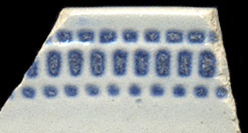 A rouletted band consisting of three stacked rows of rectangles/squares. The sizes of squares may vary between rows.
