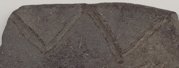 Dogtooth Band 06 consists of the simplest saw-tooth motif : a plain zigzag line with no additional bounding lines. The example shown here is seen on Colonoware.