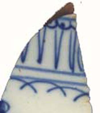 Characterized by a single row of fish roe suspended from a plain band. Extending from the row of fish roe are long and narrow triangles, which reach, but do not necessarily touch, a double band. Finally, overlapping half-circles or arcs suspended from the bottom of the line (Half-Circle Band 03).