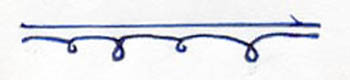 Underneath a single, solid line is an outstretched curlicue. It is similar to a half-circle band with small loops at the point where one half circle meets the next.
