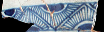A series of opposite triangles separated by diagonal spaces. Inside the triangles are half circle shapes with radiating lines running out to the enclosing edges of the triangle. Commonly found on handpainted pearlware.
