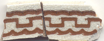 | Interior | Proximal Rim | Slip, inlaid | Yellow-Red, Intense Dark | Geometric Band 26 | Stacked Combination A |
