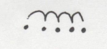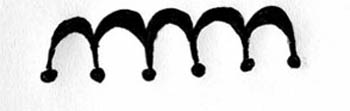 This band consists of connected half circles. A solid dot  beneath the circles may or may not be connected to them.