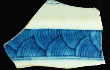 A band consisting of overlapping sets of concentric circles (similar-looking to tree rings or scales). The outermost band of each set appears to be slightly darker than the rest. Primarily seen on porcelain.