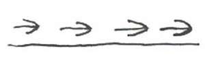 A series of non-connected arrows characterizes Husk Chain Band 4. It may have a thin plain band both above and below the arrows or the band may be “free floating”. This band can appear on both scalloped edge and non-scalloped edge vessels.