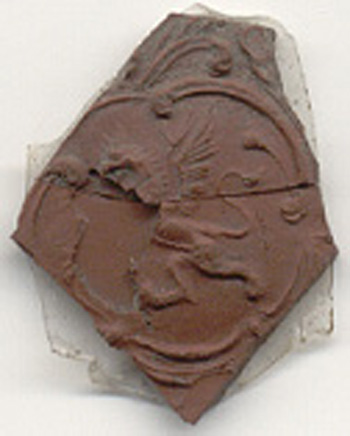 Any depiction of a mythical creature, such as a griffon seen sprigged on the Rosso Antico example.