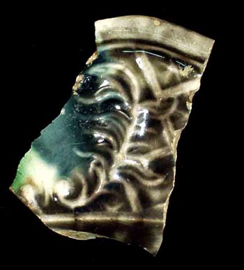 A molded feather that functions as a divider between molded designs on edge or marley decorated wares such as White Salt Glaze and Whieldon.