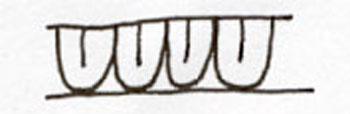 Scallop Band 3 is characterized by a continuous band of elongated half-circles painted between two plain bands. Inside each half-circle is a straight line extending from the plain band but not the full length of the half-circle.