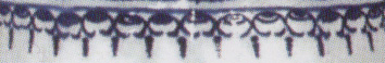 This band is suspended from a single line. Connected open circles (with smaller filled circles inside them) form a band. A spearhead is placed at each junction of circles. The spearhead is composed of dots aligned vertically.