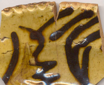Note that only the color that is trailed onto the vessel is recorded in the Decorative Technique table. The white/yellow slip would be recorded in the Ceramic Interior Surface field and the brown trailed slip is recorded in the decorative technique table as shown.