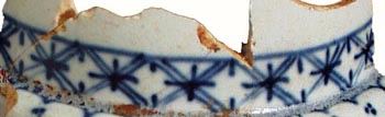 This detailed trellis band is characterized by repeating double-lined Xs that have a cross where the double-lined Xs meet. There are two short ticks at the upper and lower junctions of the double-crossed Xs. This band is also seen with triple-lined Xs.