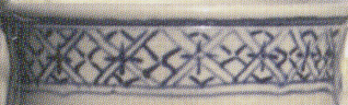 Very similar to Trellis Band 14: Repeating double- or triple-lined Xs with dash decoration in the interstices between, above, and below the Xs. The difference with this band is the addition of a single line cross on each double X.