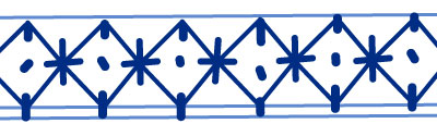 Very similar to Trellis Band 33: A band composed of a single row of X’s with a cross in each X, creating an asterisk. A single dot is located in the middle of the diamond negative space between the X’s. This band the addition of three vertical dots down the midline of each diamond: one at the top vertex, one in the center and one at the bottom vertex.
